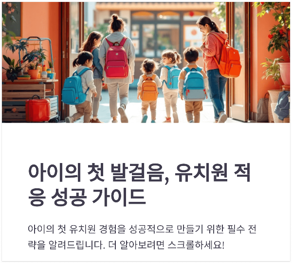 유치원 첫날은 아이의 적응에 큰 영향을 미칩니다. 충분한 수면과 여유로운 아침 시간으로 하루를 시작하세요.