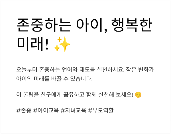 존중하는 아이는 부모의 일상 언어와 태도에서 시작됩니다. 부모의 말 한마디, 작은 행동이 아이의 자존감과 사회성, 그리고 타인을 존중하는 태도를 어떻게 키우는지 구체적 사례와 실천법으로 안내합니다.