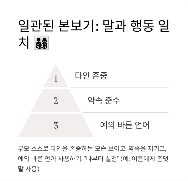 1. 모델링 효과: 부모가 타인을 존중하는 모습을 보이면 아이도 자연스럽게 배웁니다